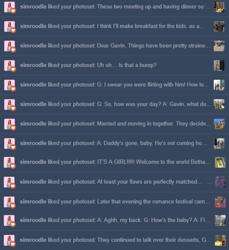 September 5, 2017December 11, 2018blueorchidsims @simroodle thank you lovely for spamming my dashboard with all the likes 😉 it makes me happy Share this: Share on X (Opens in new window) X Share on Facebook (Opens in new window) Facebook Like Loading... Related